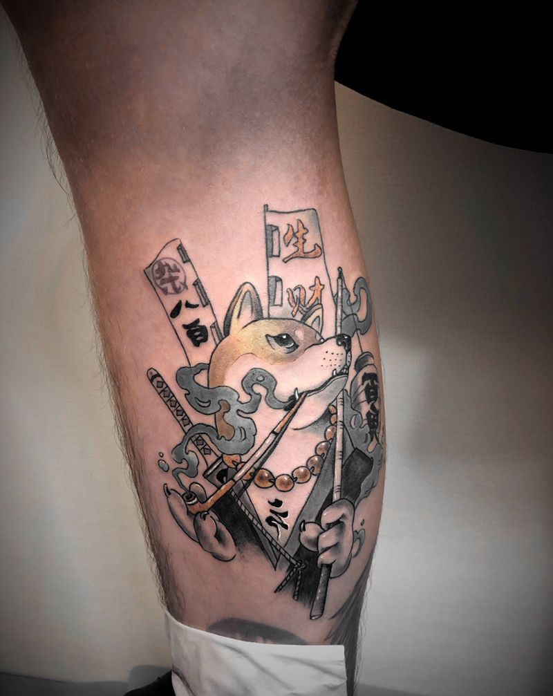 当前位置: 首页 >广东省深圳市纹身店-峰刺青纹身工作室纹身图案>犬纹身图片_腿部新传统柴犬纹身图案