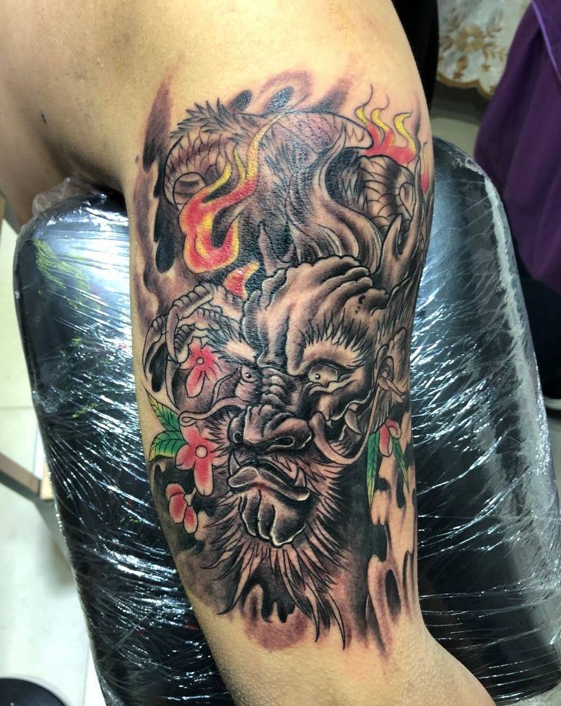 • T网红王老大花腿龙纹身图片_腿部新传统纹身图案