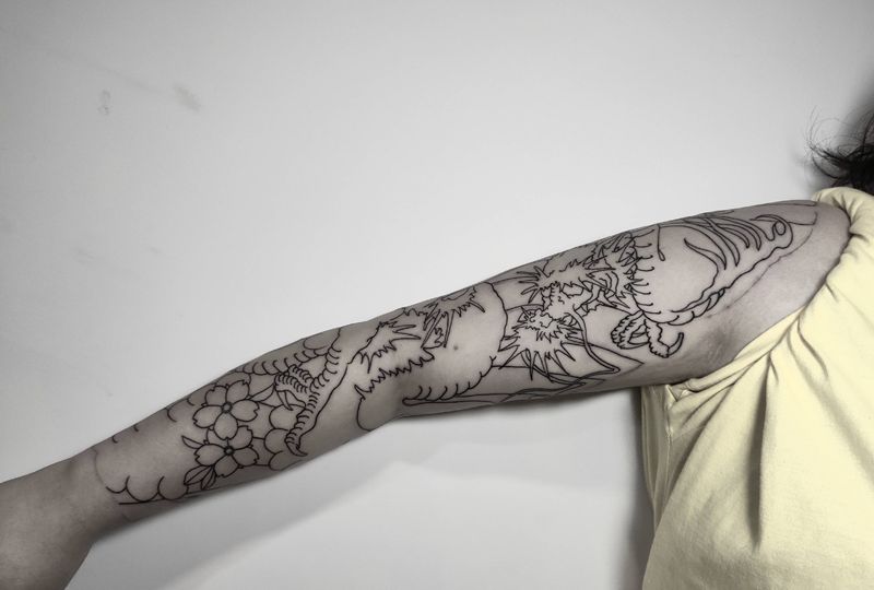 当前位置: 首页 >广东省深圳市纹身店-三日刺青艺术工作室纹身图案>龙花臂第一次线条纹身图片_手臂老传统纹身图案