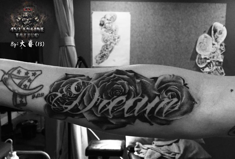 当前位置: 首页 >广东省深圳市纹身店-三日刺青艺术工作室纹身图案>花体字玫瑰纹身图片