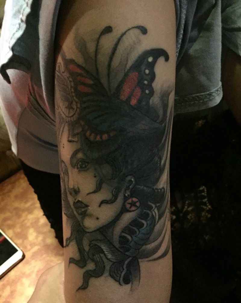 • 纹身吧推荐的披肩图腾半胛纹身图案作品展示