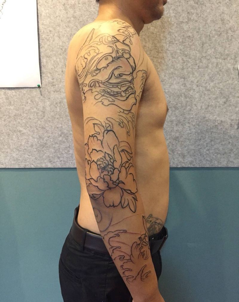 当前位置: 首页 >广东省深圳市纹身店-三日刺青艺术工作室纹身图案>新传统花臂第一次割线纹身图片