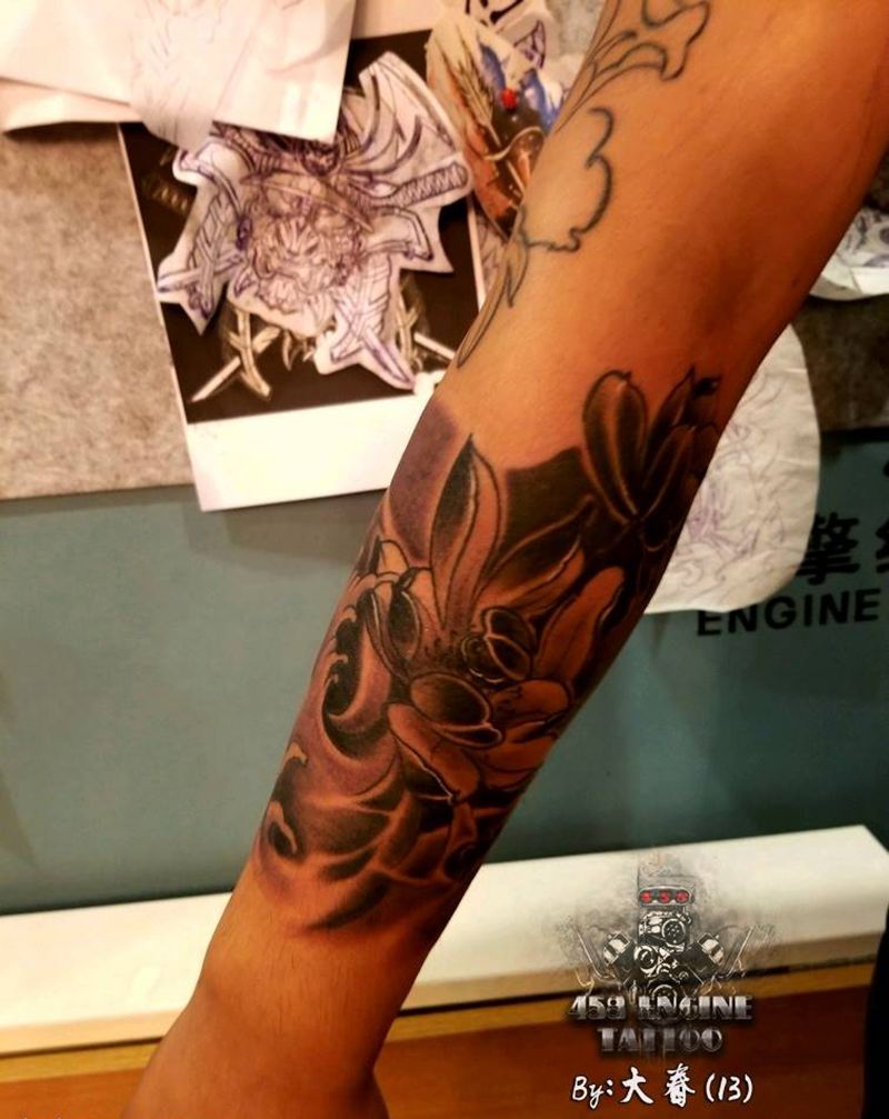 当前位置: 首页 >广东省深圳市纹身店-三日刺青艺术工作室纹身图案>花臂第二次纹身图片