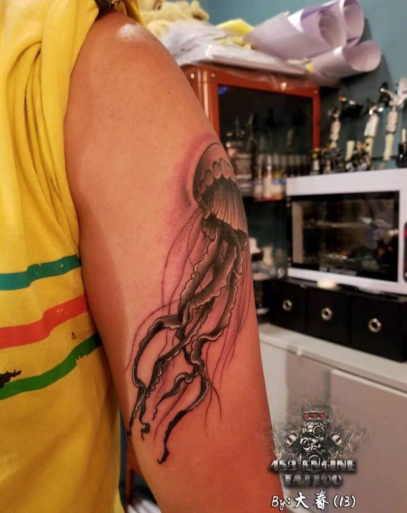 当前位置: 首页 >广东省深圳市纹身店-三日刺青艺术工作室纹身图案>水母纹身图片