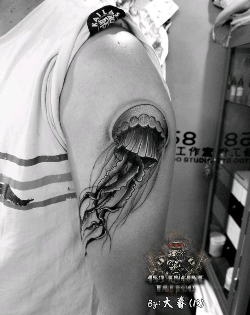 当前位置: 首页 >广东省深圳市纹身店-三日刺青艺术工作室纹身图案>水母纹身图片