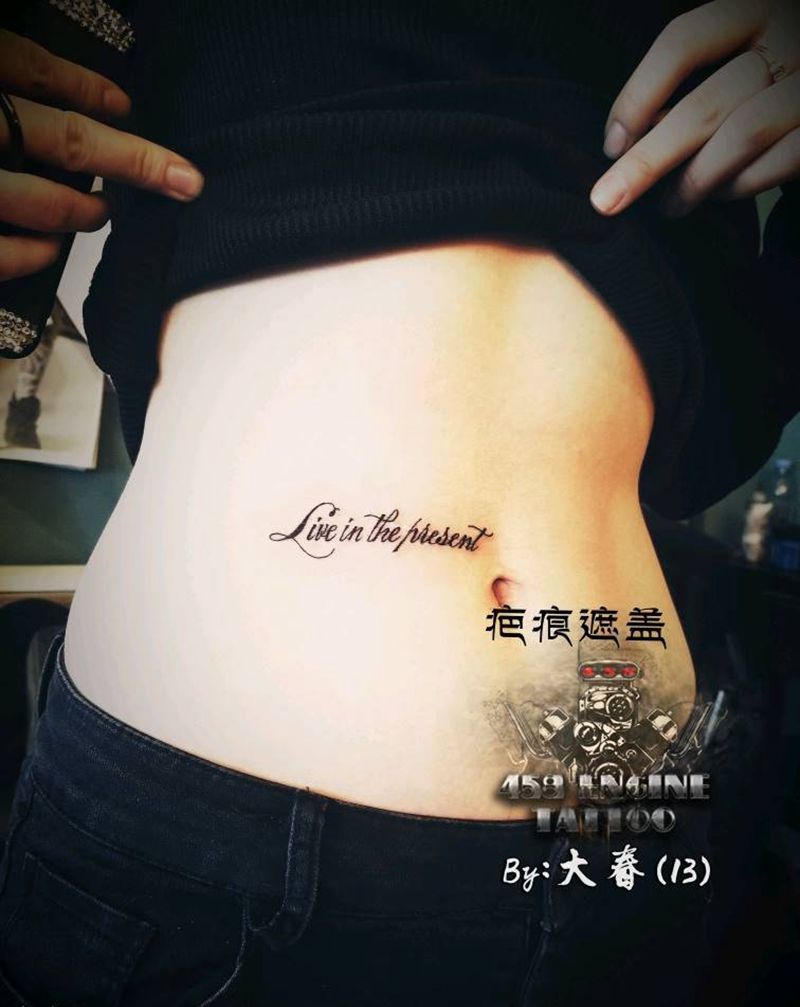 • T关于私处得爱!纹身图片_成品腹部清新字符图腾纹身图案
