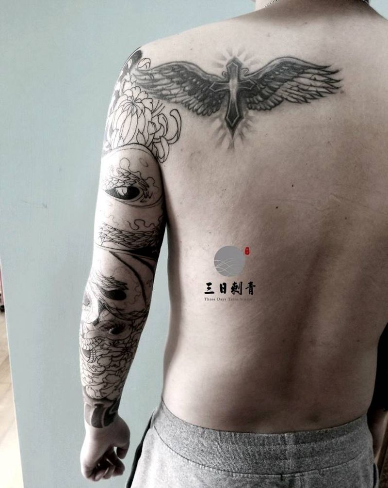 • 纹身吧推荐的披肩图腾半胛纹身图案作品展示