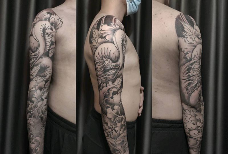 当前位置: 首页 >广东省深圳市纹身店-三日刺青艺术工作室纹身图案>花臂黑灰,下次色彩纹身图片_手臂新传统纹身图案