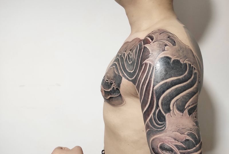 当前位置: 首页 >广东省深圳市纹身店-三日刺青艺术工作室纹身图案>8小时半胛,顾客赶时间,下次精纹身图片_手臂胸部老传统纹身图案