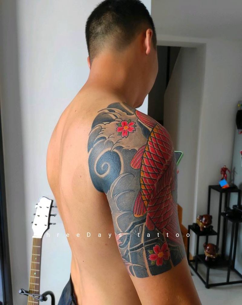 当前位置: 首页 >广东省深圳市纹身店-三日刺青艺术工作室纹身图案>富贵鲤鱼半胛纹身图片_胸部手臂老传统纹身图案