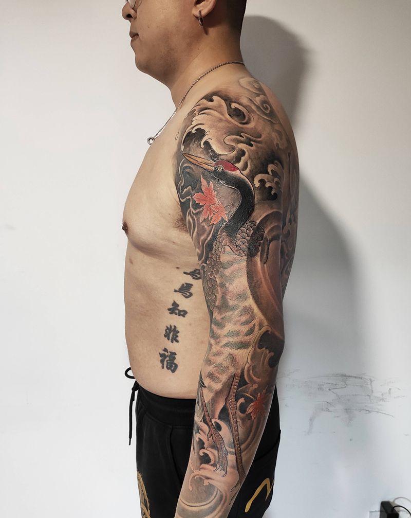 当前位置: 首页 >广东省深圳市纹身店-三日刺青艺术工作室纹身图案>仙鹤纹身图片_手臂新传统纹身图案