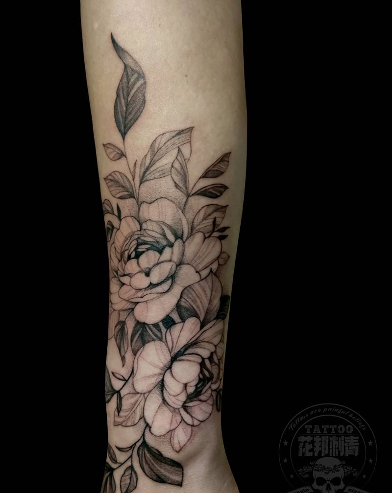 当前位置: 首页 >广东省深圳市纹身店-花邦刺青馆纹身图案>素花纹身图片_手臂新传统素花花清新纹身图案