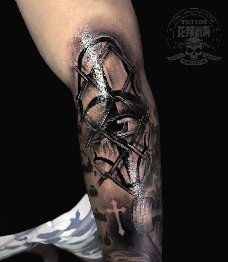 当前位置: 首页 >广东省深圳市纹身店-花邦刺青馆纹身图案>牢笼之眼纹身图片_手臂欧美写实眼牢笼欧美纹身图案