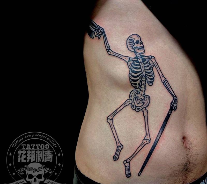 骷髅人纹身图片_腰部新传统骷髅纹身图案