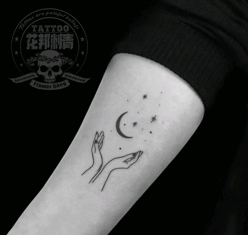 当前位置: 首页 >广东省深圳市纹身店-花邦刺青馆纹身图案>【捧月】纹身图片_手臂小清新纹身图案