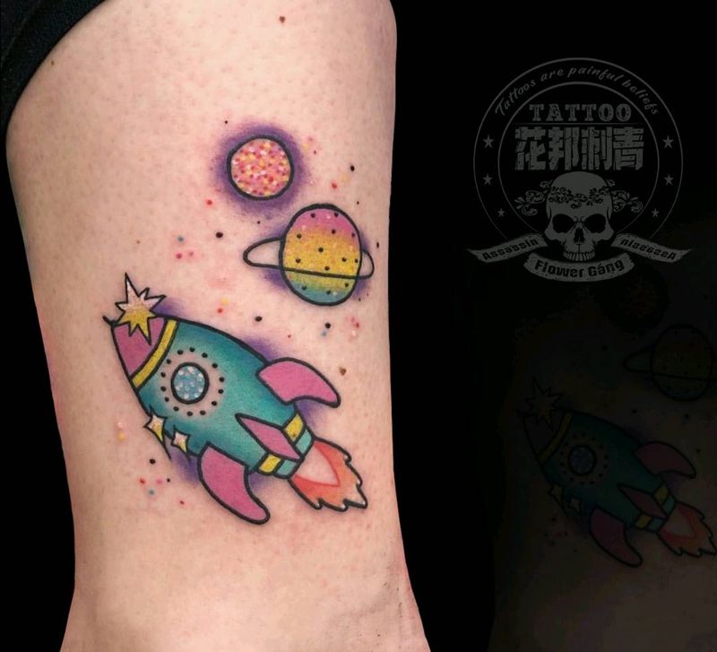 当前位置: 首页 >广东省深圳市纹身店-花邦刺青馆纹身图案>【火箭星球】纹身图片_腿部脚部新传统水彩卡通小清新纹身图案