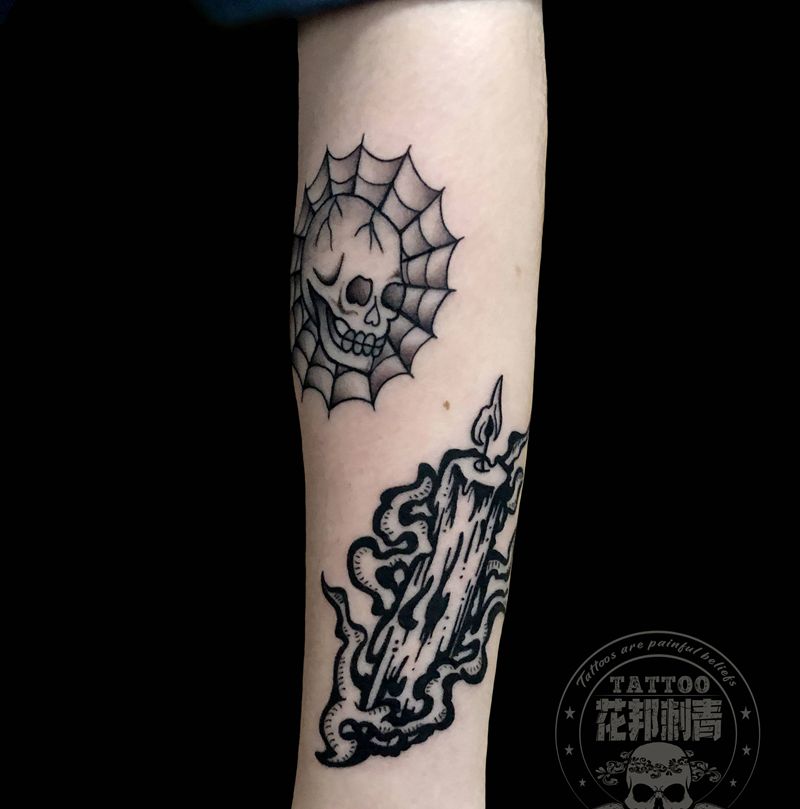 当前位置: 首页 >广东省深圳市纹身店-花邦刺青馆纹身图案>小图案拼接纹身图片_手臂Old School拼接小图案纹身图案