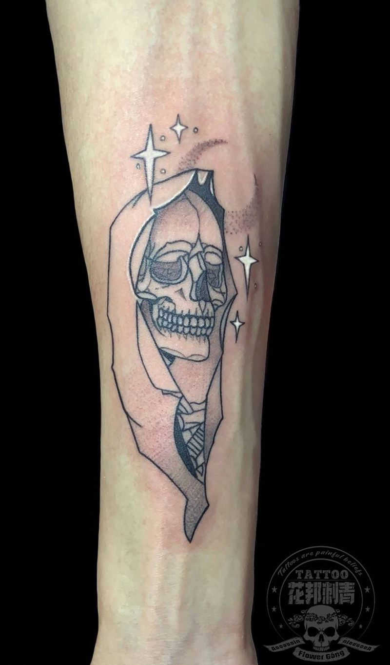 当前位置: 首页 >广东省深圳市纹身店-花邦刺青馆纹身图案>清新骷髅纹身图片_手臂Old School骷髅纹身图案