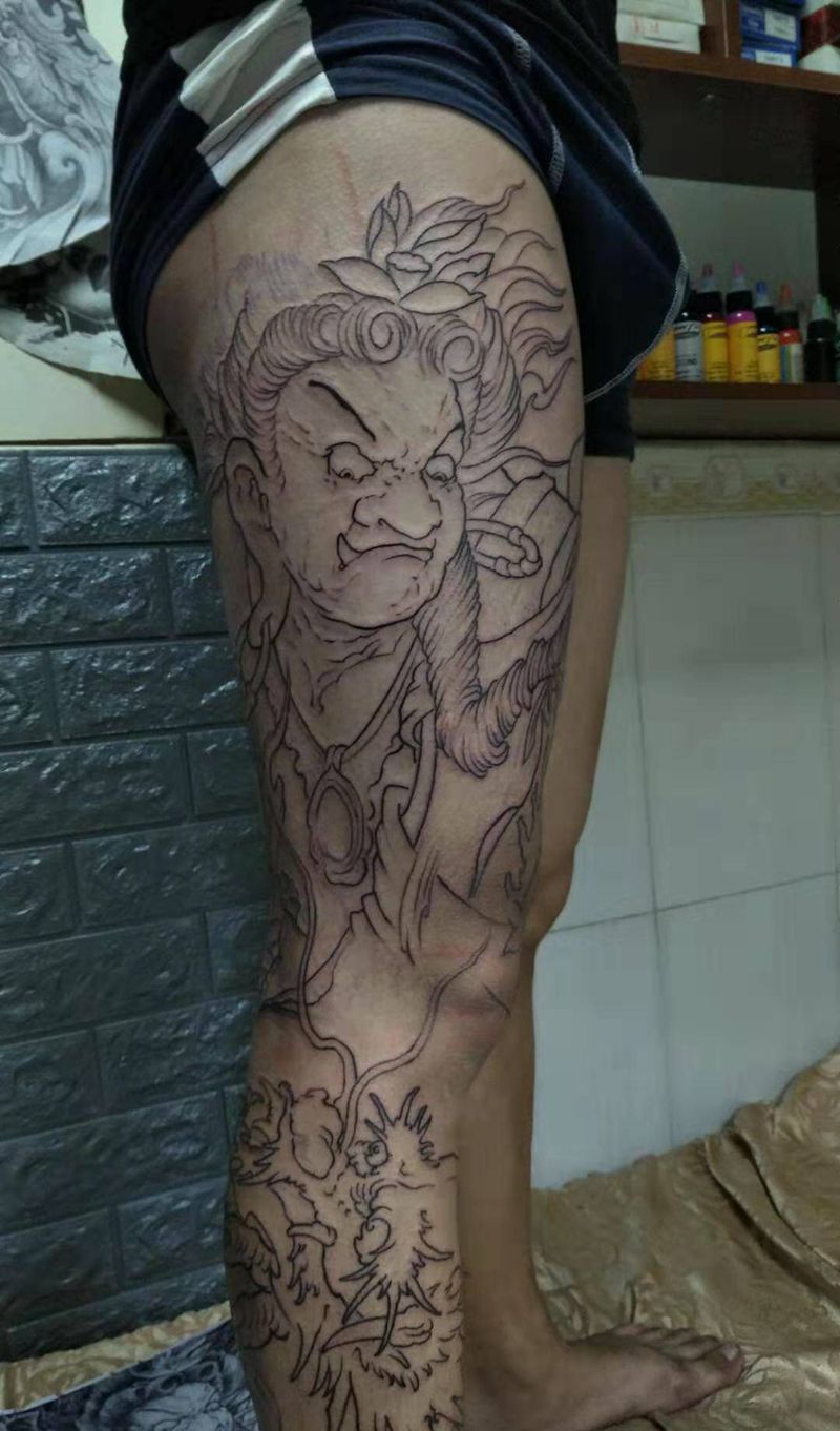 • T网红王老大花腿龙纹身图片_腿部新传统纹身图案