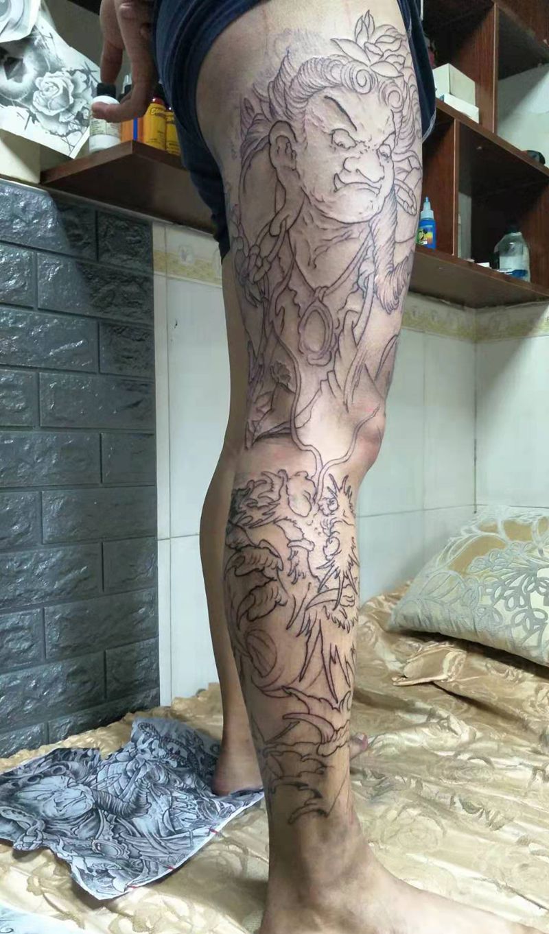 当前位置: 首页 >广东省深圳市纹身店-加王刺青纹身图案>花腿半成品纹身图片_腿部纹身图案