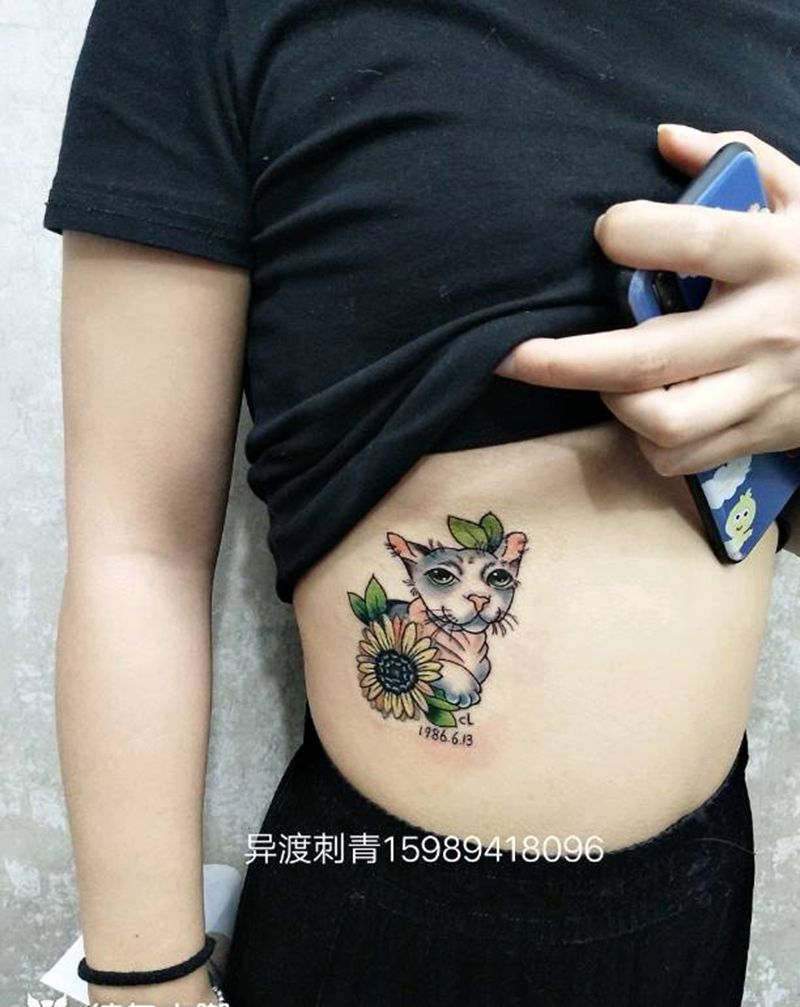 修改向日葵纹身图片_腹部背部欧美写实水彩纹身图案