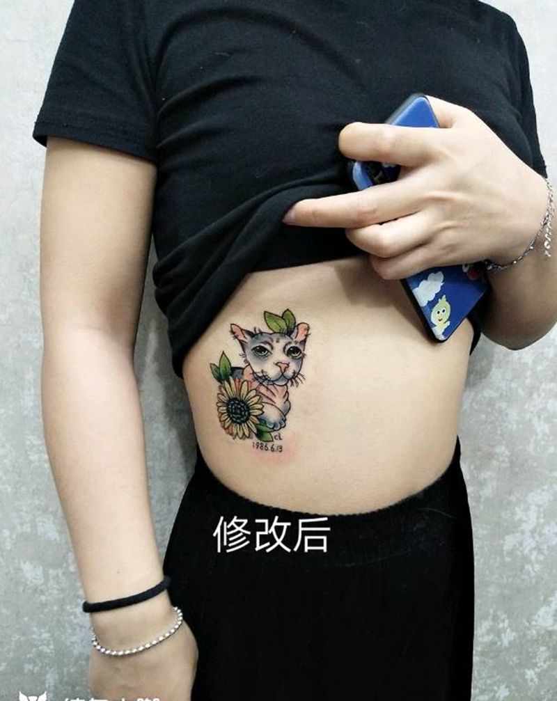 修改向日葵纹身图片_腹部背部欧美写实水彩纹身图案