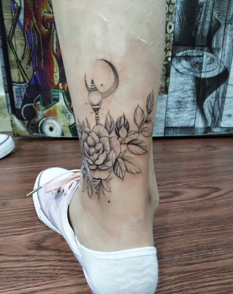 素花遮盖疤痕纹身图片_脚部肩部新传统纹身图案