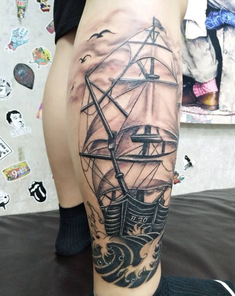 扬帆远航!!纹身图片_腿部手臂新传统欧美写实纹身图案