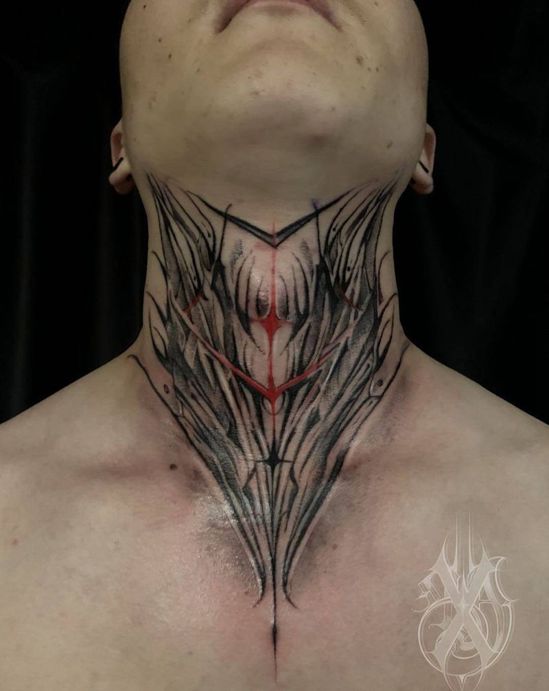 暗黑花体字纹身图片_颈部花体字纹身图案