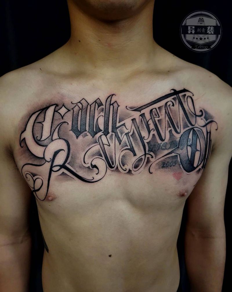 《互相尊重》纹身图片_胸部花体字纹身图案