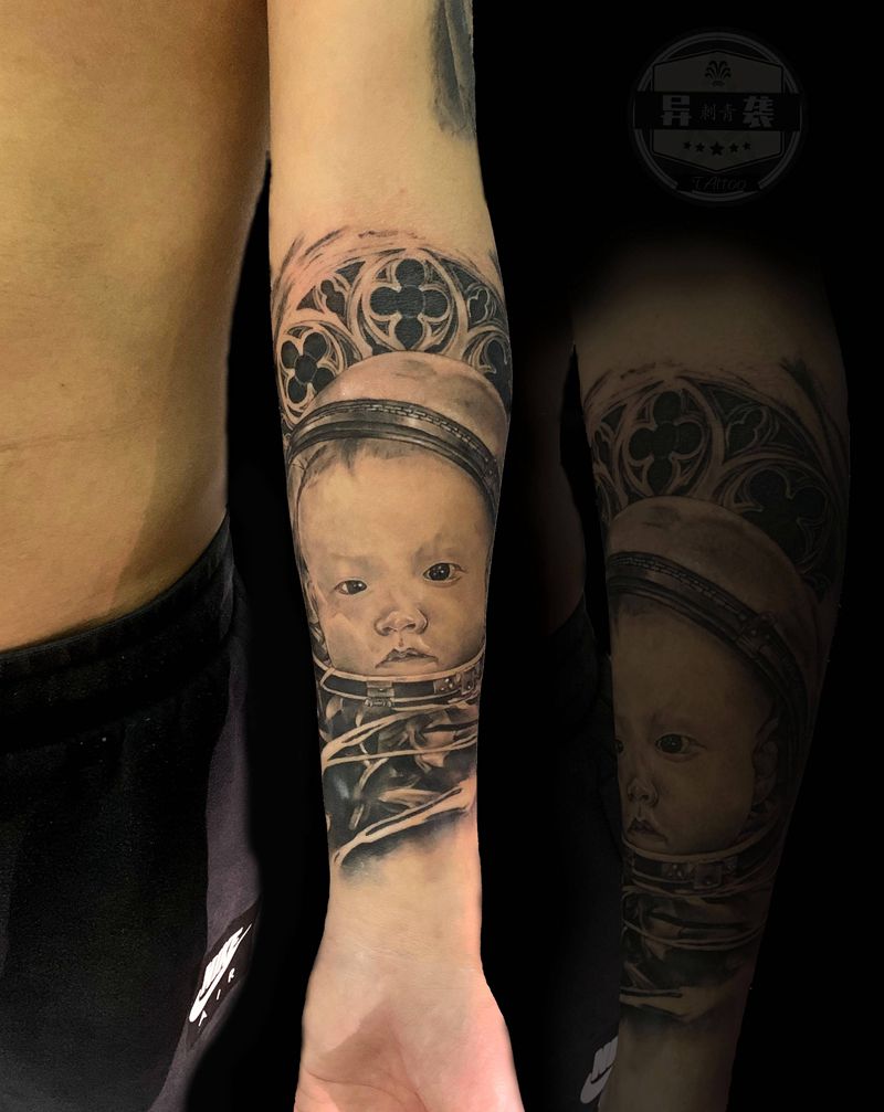 当前位置: 首页 >广东省深圳市纹身店-异袭Tattoo刺青馆纹身图案>写实 客人儿子纹身图片_手臂欧美写实纹身图案
