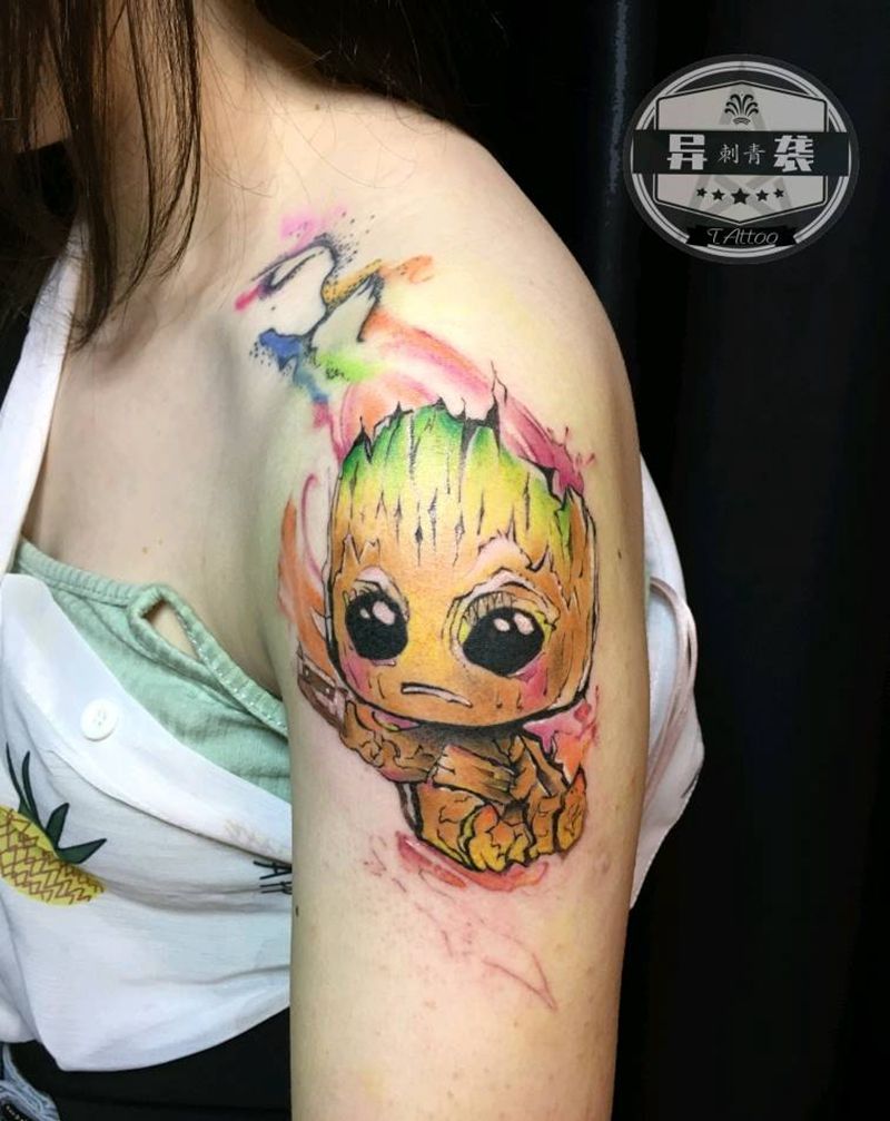 当前位置: 首页 >广东省深圳市纹身店-异袭Tattoo刺青馆纹身图案>《斯巴鲁森林人》纹身图片_手臂水彩New School纹身图案