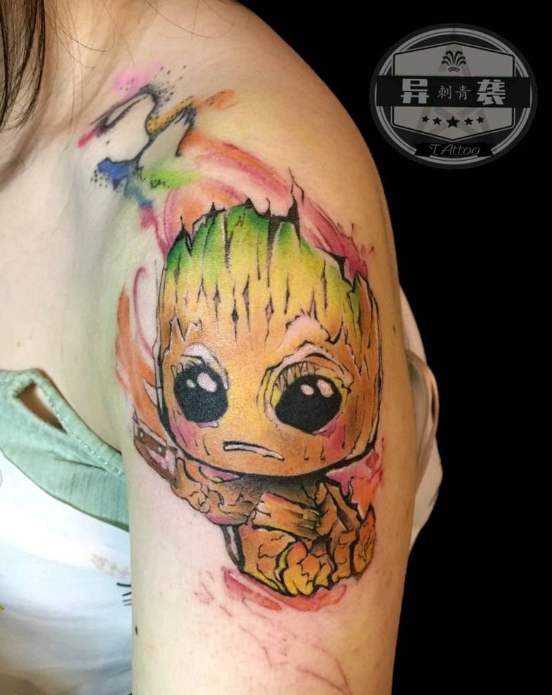 当前位置: 首页 >广东省深圳市纹身店-异袭Tattoo刺青馆纹身图案>《斯巴鲁森林人》纹身图片_手臂水彩New School纹身图案