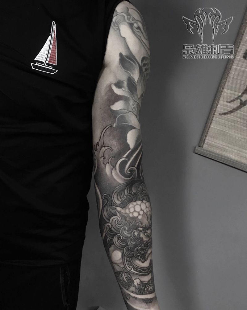 当前位置: 首页 >广东省珠海市纹身店-珠海枭雄纹身馆纹身图案>传统花臂纹身图片_手臂新传统鱼花臂唐狮鱼纹身图案