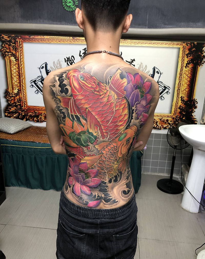 当前位置: 首页 >广东省深圳市纹身店-御绣堂刺青纹身图案>锦鲤纹身图片_背部新传统纹身图案