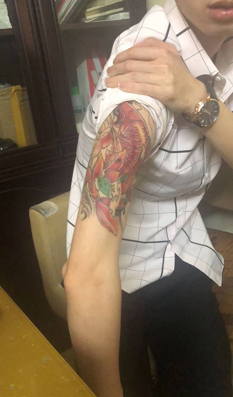 当前位置: 首页 >广东省珠海市纹身店-珠海枭雄纹身馆纹身图案>修改鲤鱼纹身图片_手部手臂新传统锦鲤鲤鱼纹身图案
