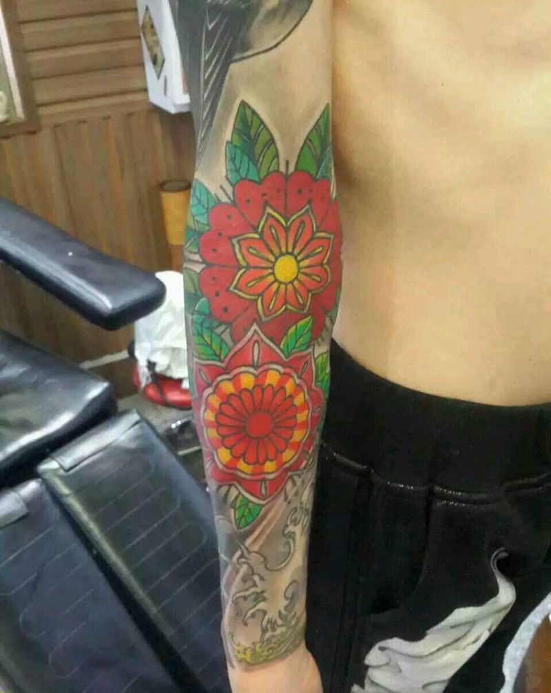 当前位置: 首页 >广东省珠海市纹身店-珠海枭雄纹身馆纹身图案>school花臂纹身图片