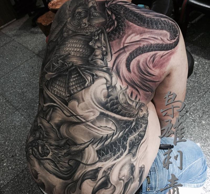 【龙武士】纹身图片_成品背部传统人物纹身图案