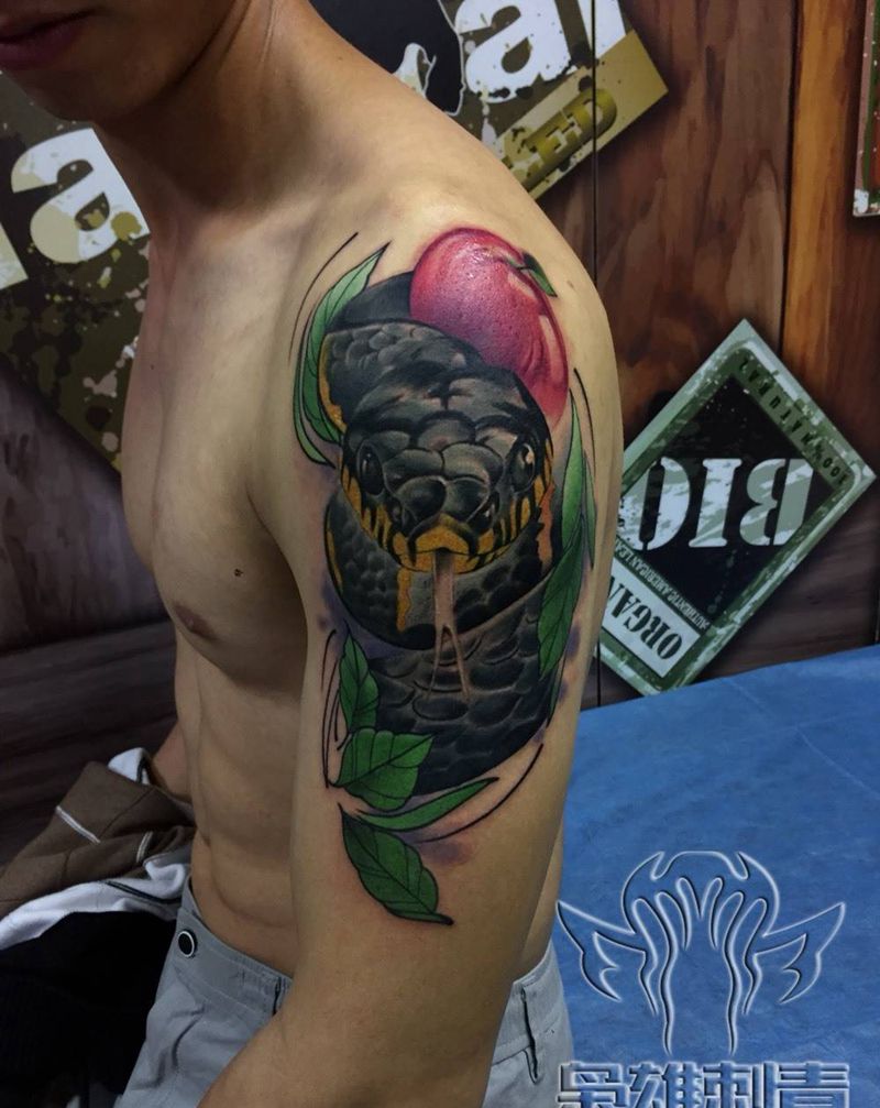当前位置: 首页 >广东省珠海市纹身店-珠海枭雄纹身馆纹身图案>蛇纹身图片_成品手臂写实动物纹身图案