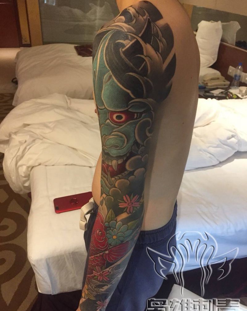 当前位置: 首页 >广东省珠海市纹身店-珠海枭雄纹身馆纹身图案>【传统花臂】纹身图片_成品手臂传统鬼神动物纹身图案