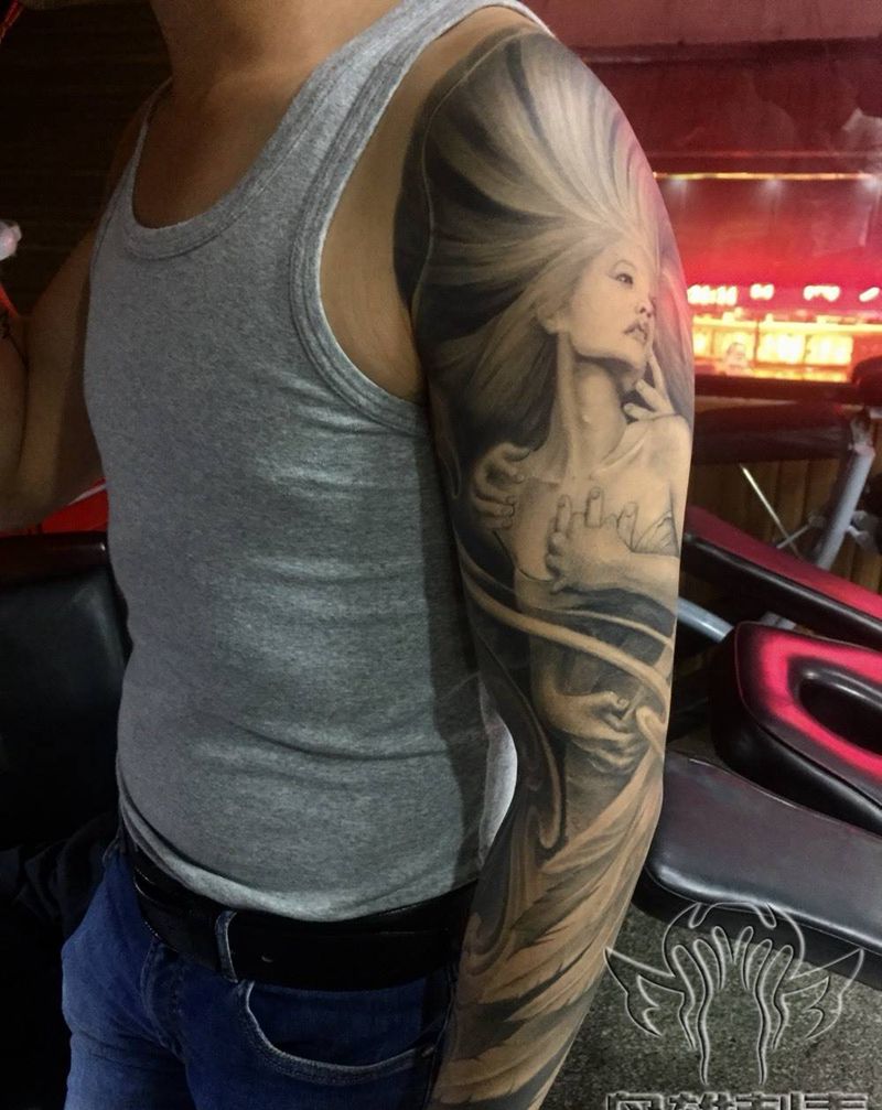 当前位置: 首页 >广东省珠海市纹身店-珠海枭雄纹身馆纹身图案>【天使翼】纹身图片_成品手臂写实肖像欧美人物纹身图案
