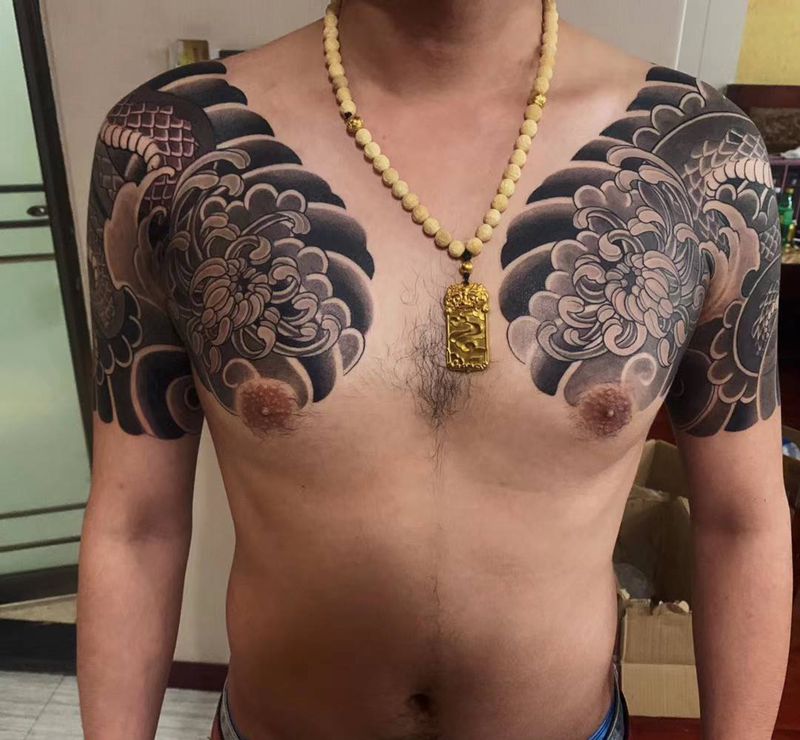 湖南出差作品纹身图片_胸部背部老传统纹身图案