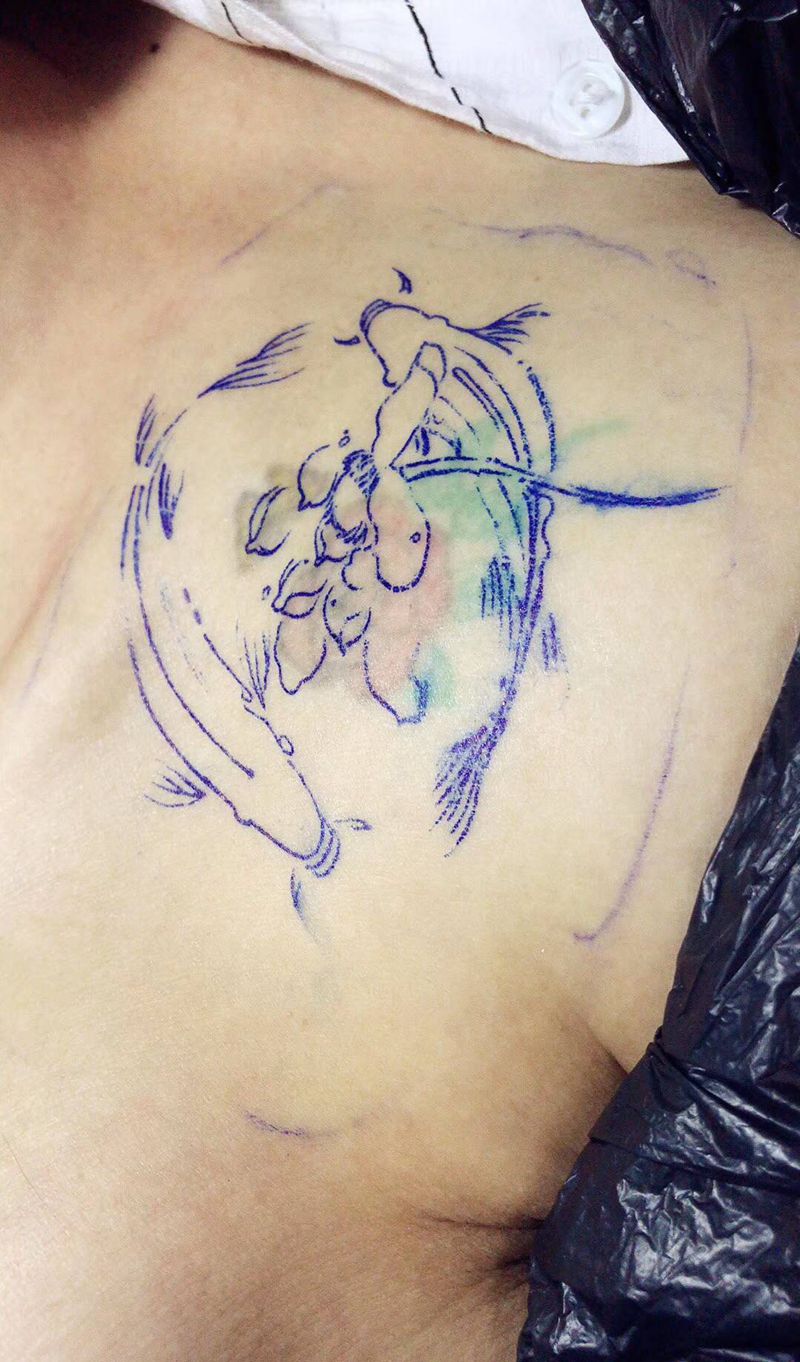 当前位置: 首页 >广东省珠海市纹身店-無名刺青纹身图案>荷花鱼纹身图片_胸部水墨纹身图案