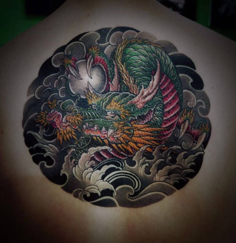 龙纹身图片_背部新传统纹身图案