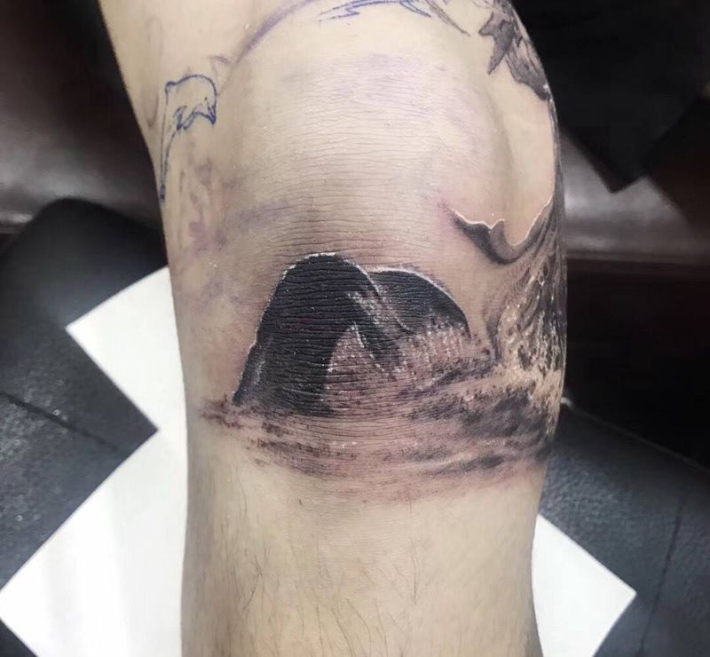 • T网红王老大花腿龙纹身图片_腿部新传统纹身图案