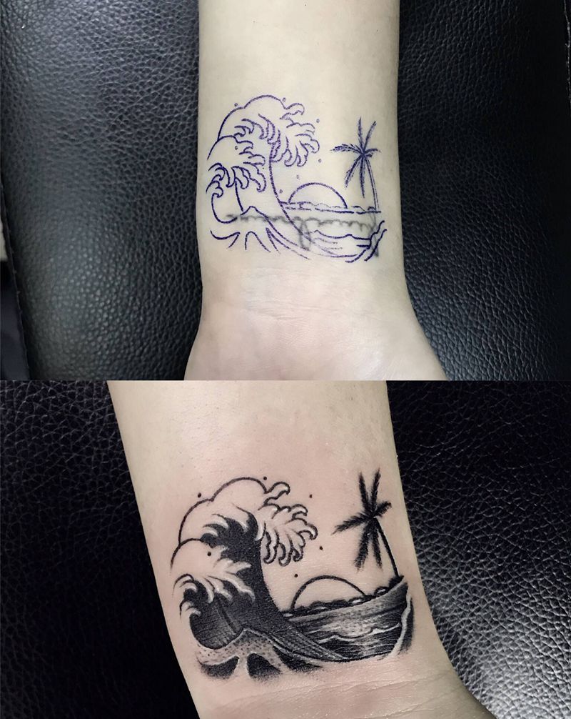 当前位置: 首页 >广东省珠海市纹身店-無名刺青纹身图案>海浪遮盖纹身图片_手部点刺水墨纹身图案