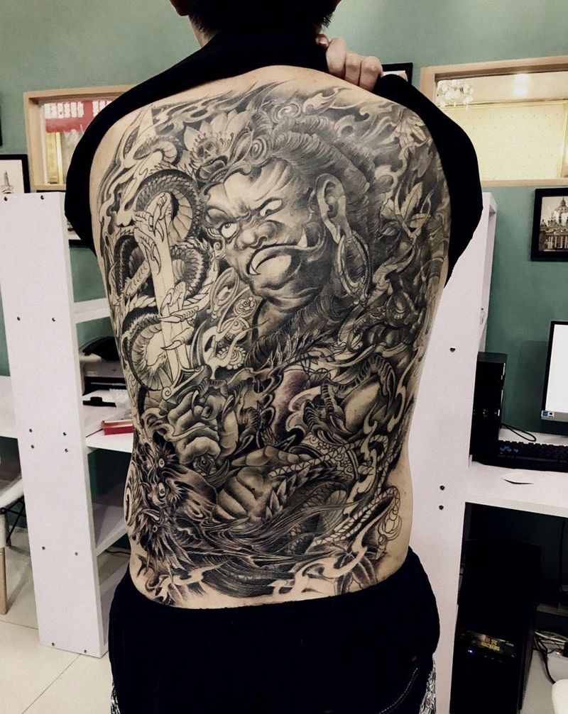 • T云龙九郎纹身图片_背部老传统云龙九郎纹身图案
