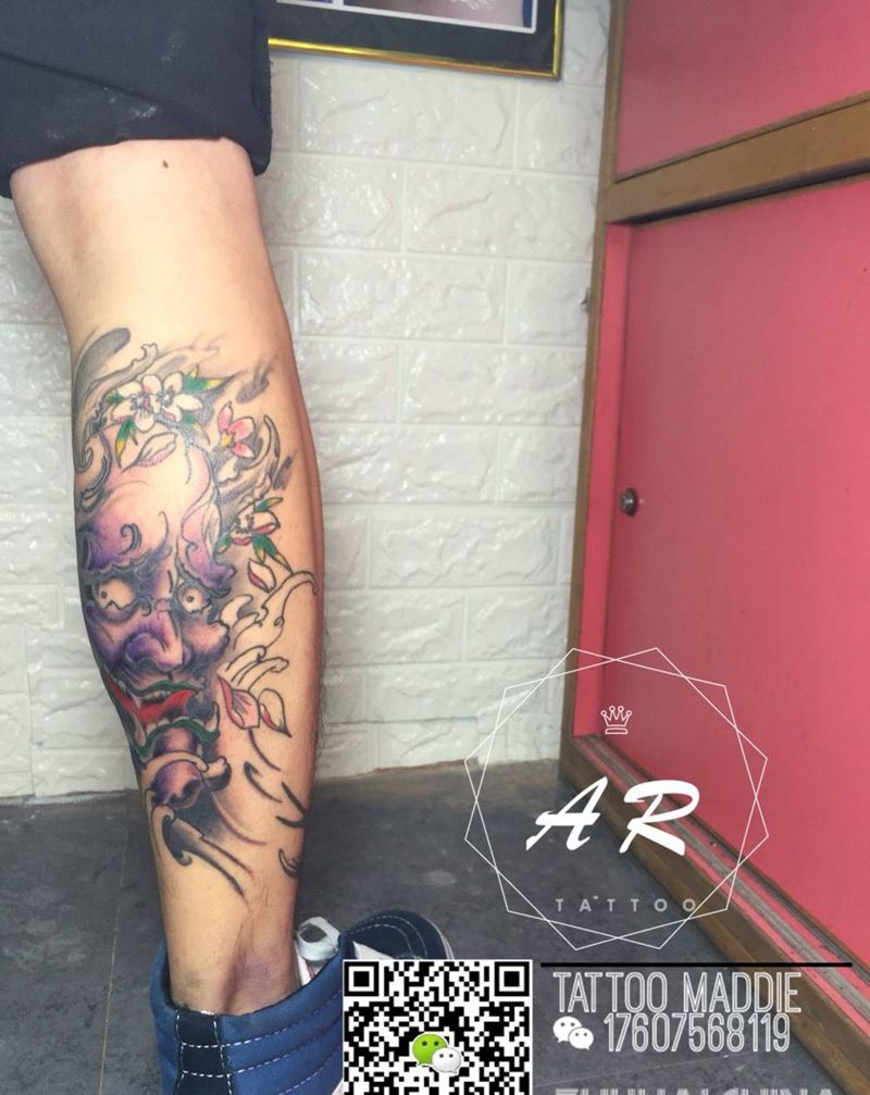 • T网红王老大花腿龙纹身图片_腿部新传统纹身图案