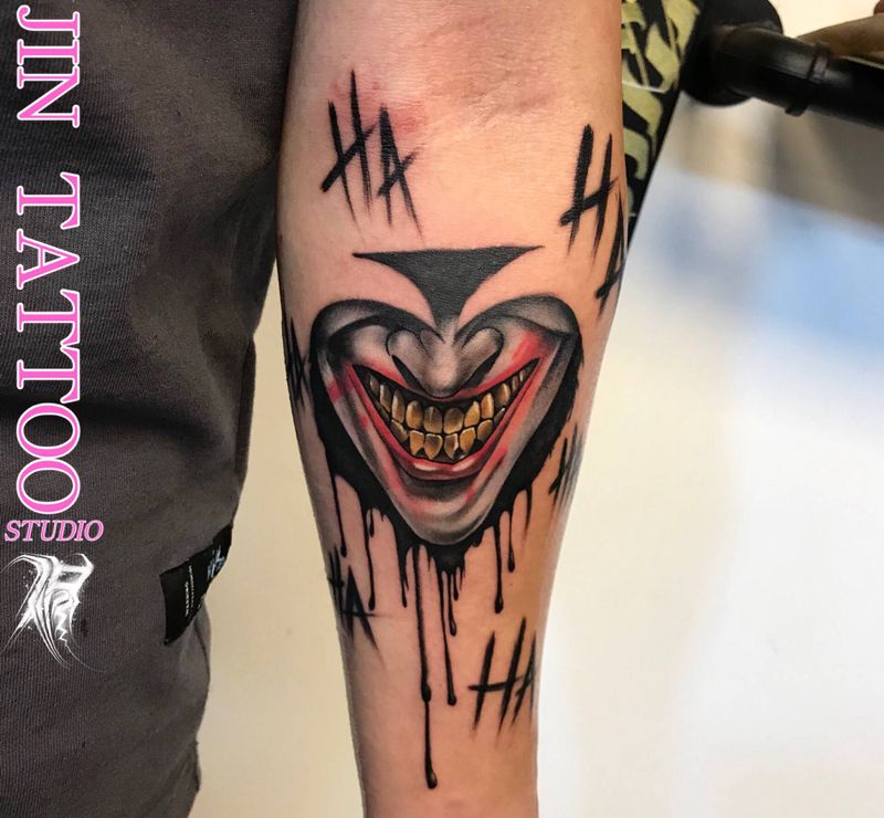 当前位置: 首页 >广东省珠海市纹身店-烬刺青纹身图案>小丑纹身图片_手臂纹身图案