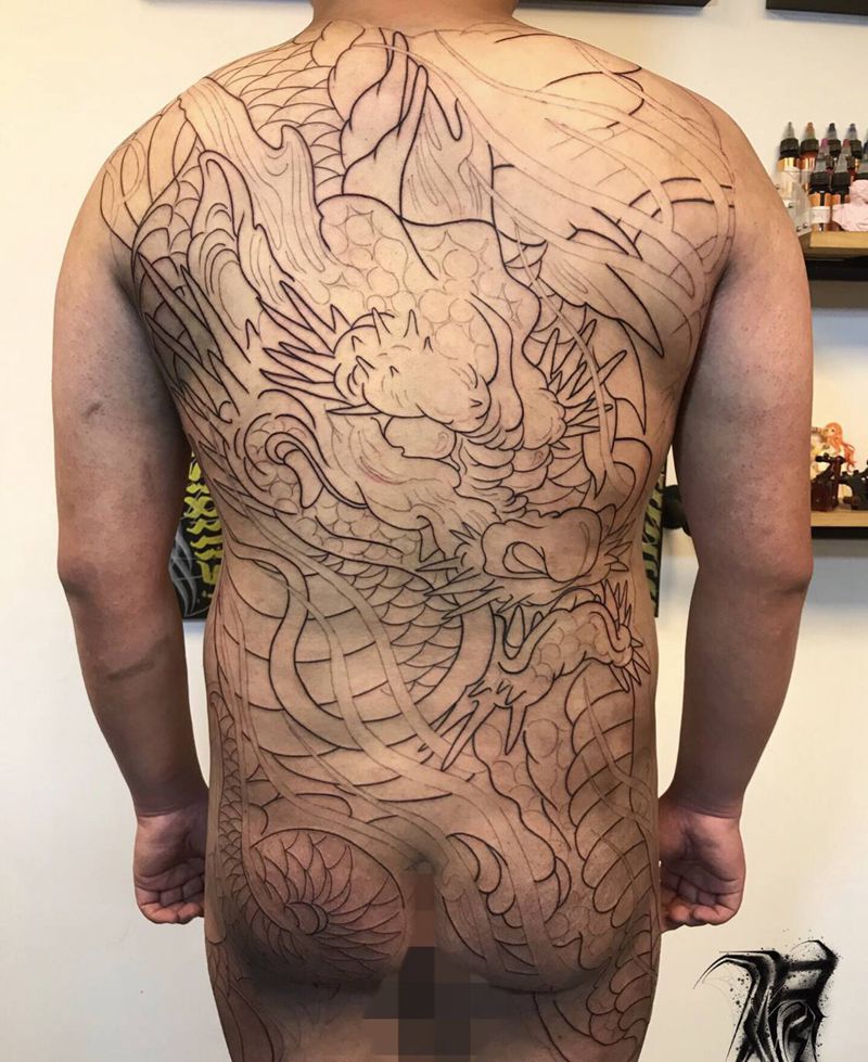 黑灰满背纹身图案